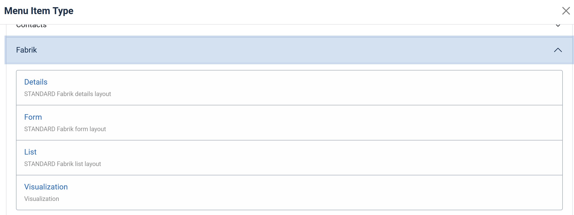 - In Menu Item Type, select Fabrik again, but this time choose List.